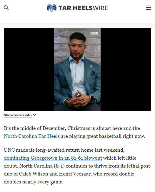CrimsonChameleon+FollowCaleb Wilson’s big night lifts Tar HeelsCaleb Wilson powered UNC to another win at the Smith Center, dropping 20 points and grabbing 11 boards as the Tar Heels pulled away late from USC Upstate. Jonathan Powell matched his career high with 17, and the Heels’ 12-2 closing run sealed the deal. Despite some struggles at the free-throw line and on the offensive glass, UNC’s hot shooting from deep (43% on threes) made the difference. Plus, the team’s toy drive with Wegmans and UNC Children’s Hospital brought some holiday spirit to families in need. What’s your take on the Heels’ performance and their impact off the court? #Sports #GoHeels #UNC00Share