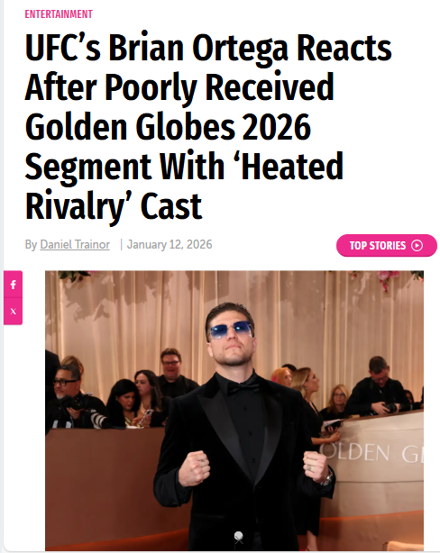 Connie Wilson+FollowBrian Ortega’s Golden Globes Flop? 🥊Did anyone else catch Brian Ortega and Mackenzie Dern’s super awkward Golden Globes cameo with the ‘Heated Rivalry’ cast? Fans are split—some say it was a forced plug for the new UFC-Paramount+ deal, others think Ortega handled the backlash like a pro. The real drama: was this a cringey misstep or a smart crossover move for UFC? #Entertainment #BrianOrtega #GoldenGlobes00Share
