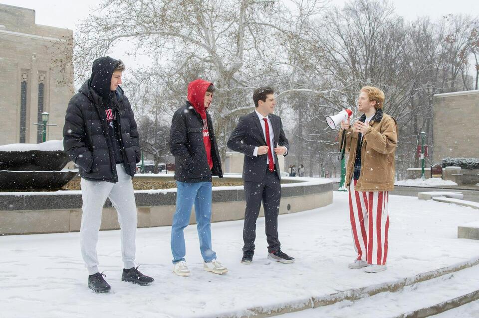 jharvey+FollowIU students brave snow for Mendoza lookalike showdownThree IU students faced off in a hilarious Fernando Mendoza lookalike contest right in the middle of a snowy Fine Arts Plaza. Forget just looking like the Hoosiers’ star QB—these guys had to throw a football, race around the fountain, and give their best pre-game hype speech. The crowd, bundled up against the cold, cheered them on, and Max Augustini took home the BuffaLouie’s gift card prize. It’s wild how campus spirit can turn even a freezing day into a celebration. Would you join a lookalike contest for your favorite local celeb? #Sports #IUBloomington #HoosierNation00Share