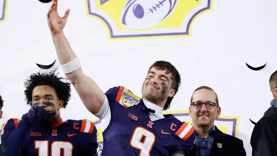 glen25+FollowLuke Altmyer’s epic sendoff in Illinois footballLuke Altmyer capped his Illini career in unforgettable fashion, dominating the Music City Bowl and snagging MVP honors. His poise and playmaking—nearly 200 passing yards, a touchdown, plus another score on the ground—powered Illinois past Tennessee. Altmyer’s three-year run in Champaign rewrote the record books and sparked a program turnaround, tying him for second-most wins and surpassing legends like Juice Williams in touchdown passes. For many, he’s now the greatest QB in Illinois history. How do you think Altmyer’s legacy stacks up against other Illini greats? What moment from his career stands out most to you? #Sports #Football #Illini00Share