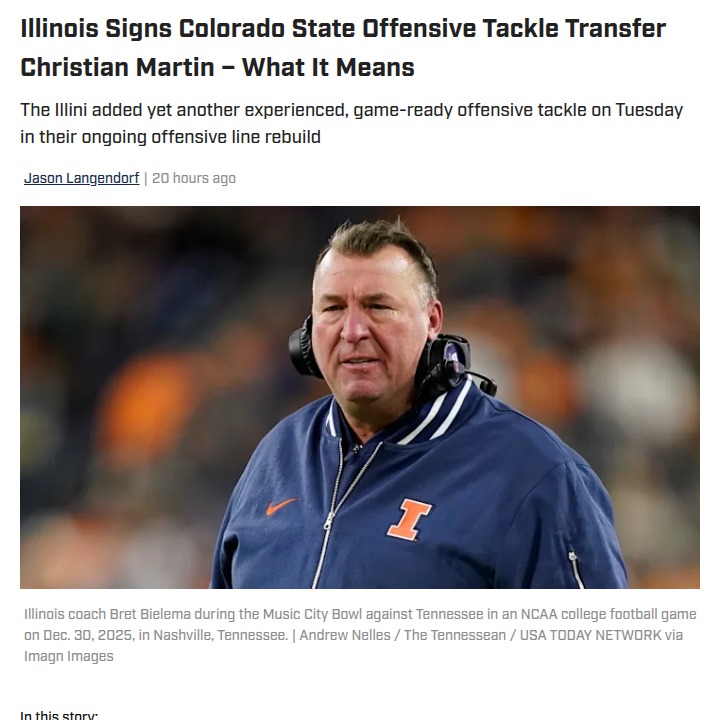Chad Williams+FollowIllinois football’s O-line just got deeperIllinois is stacking up serious talent on the offensive line, bringing in Colorado State transfer Christian Martin hot on the heels of other big signings. Martin, a 6’6”, 300-pound tackle with two years of eligibility left, started every game last season and has the athleticism to make a real impact in the Big Ten. With a crowded competition for starting spots, the Illini now have more depth and potential than we’ve seen in years. Could this new-look line finally give Illinois the edge it’s been missing? Let’s hear your thoughts on how these moves might change the team’s fortunes! #Sports #Football #IllinoisFootball00Share