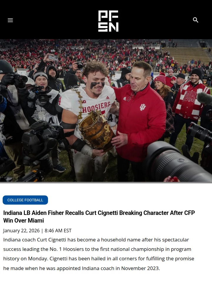 Michael Pitts+FollowIndiana’s Magnificent Seven Make HistoryHoosier Nation, how about those Magnificent Seven? Coach Cignetti and his loyal crew of James Madison transfers just flipped the script on college football, leading Indiana to a wild 16-0 run and a national title over Miami. From Kamara’s clutch plays to Black’s breakout runs, these underdogs proved heart and chemistry can outshine stars. Did anyone else get chills watching that blocked punt TD? This rivalry win is one for the ages! #Sports #Football #IndianaHoosiers00Share