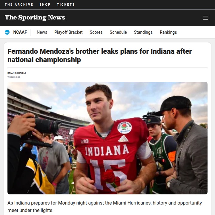 hnguyen+FollowIndiana’s Genius QB Could Be NFL’s Top PickFernando Mendoza isn’t just torching defenses—he’s got a 5.4 GPA and might be the smartest guy in the College Football Playoff. Indiana’s star QB is leading the Hoosiers to their first-ever national title shot, and if the Raiders grab him at No. 1 in the 2026 NFL Draft, he’s looking at a $55M payday. Book smart, field smart, and possibly the next big thing in the NFL. Wild, right? #Education #CFP #IndianaHoosiers20Share