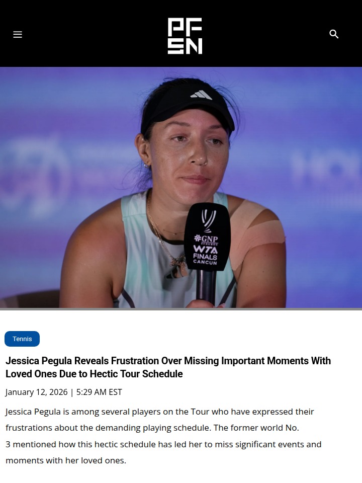 matthew58+FollowPegula Opens Up on WTA Tour BurnoutAnyone else catch what Jessie Pegs said on The Changeover? She’s not alone in calling out the brutal WTA schedule—missing family milestones, constant travel, and barely any offseason. The two-week Masters 1000s back-to-back with Slams are really taking a toll, mentally and physically. Makes you wonder how much longer top players can keep this up without major changes. Thoughts on how the Tour can fix this? #Sports #Tennis #JessicaPegula10Share