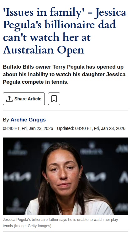 davidsonbrandon+FollowFamily pressures behind the scenes at the Australian OpenJessica Pegula’s rise to tennis stardom comes with a twist: her billionaire dad, Terry Pegula, admits he can barely watch her play, saying it’s caused real tension in their family. Even with his $9.3 billion fortune and ownership of the Buffalo Bills, Terry’s business commitments keep him away from Jessica’s matches—he’s only seen two in four years! Jessica says she actually thrived under her dad’s high expectations, but it’s clear that success can complicate family dynamics. How do you think parents should balance support and pressure when their kids chase big dreams? #Sports #AustralianOpen #JessicaPegula00Share