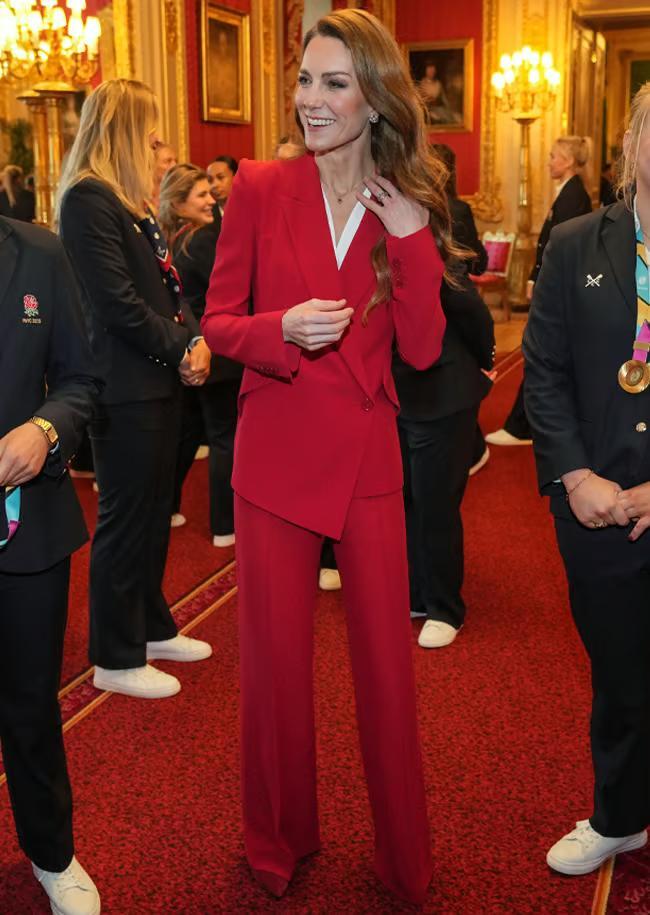 Cory Weaver+FollowKate Middleton’s Power Suit Repeat!Kate Middleton just proved she’s the queen of outfit recycling—she rocked her bold red Alexander McQueen pantsuit for the third time while hosting the England Women’s Rugby Team at Windsor Castle. Fans are obsessed with how she styled it (again!), pairing it with killer red heels and gold jewelry. Honestly, who else could make rewearing a suit look this iconic? Red really is her color! #Beauty #KateMiddleton #RoyalStyle60Share