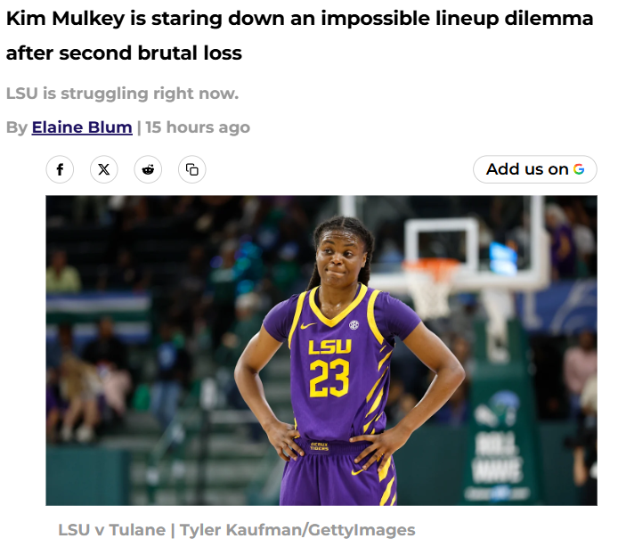 GalacticGiraffe+FollowMulkey’s Lineup Dilemma: Fulwiley or Richard?Tiger Nation, we’ve got a real chess match brewing with Coach Mulkey’s latest lineup shakeup. After tough losses to Kentucky and Vandy, she started MiLaysia “The Spark” Fulwiley, who bounced back strong but still had some costly turnovers. Meanwhile, Jada Richard proved she’s still clutch off the bench. With Texas and Oklahoma looming, does Mulkey stick with Fulwiley as a starter or go back to her bench spark plug role? There’s no easy answer, but this rivalry for minutes could define our SEC run. #Sports #LSU #KimMulkey00Share