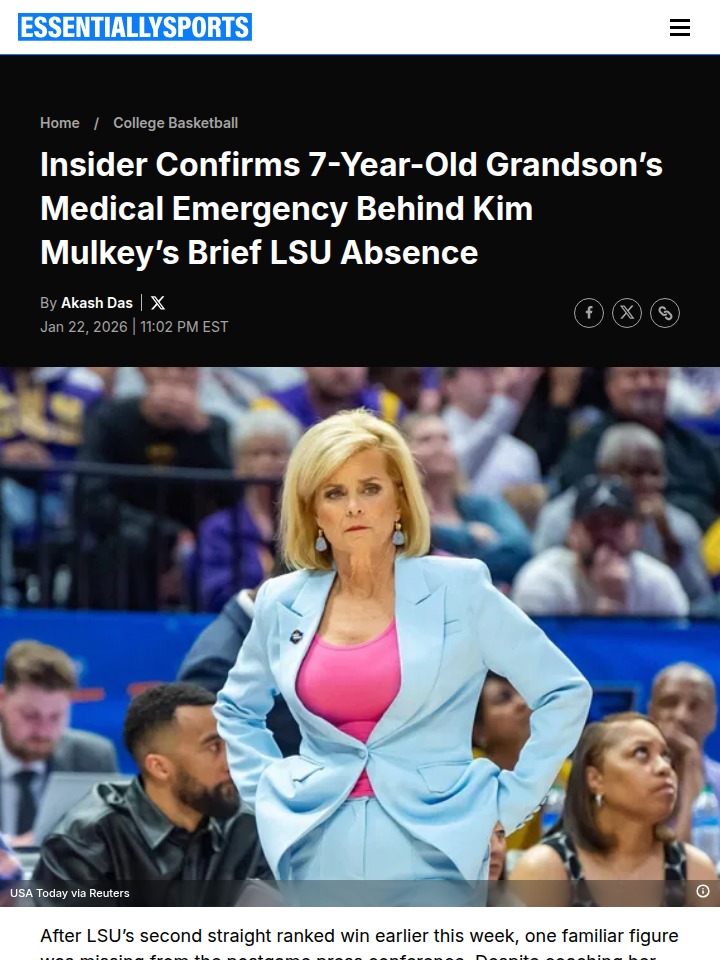 Jenna Gonzales+FollowKim Mulkey’s family emergency: What happened?Kim Mulkey’s absence after LSU’s big win over Oklahoma had fans talking, but it turns out she was dealing with something far more important than basketball. Mulkey rushed to Texas to be with her 7-year-old grandson, who was hospitalized for a ruptured appendix. She’s now back with the Tigers, but this moment reminds us that even high-profile coaches have to juggle family emergencies with their careers. How do you think teams and fans should respond when personal life takes priority over the game? Let’s talk about it. #Sports #LSU #KimMulkey00Share