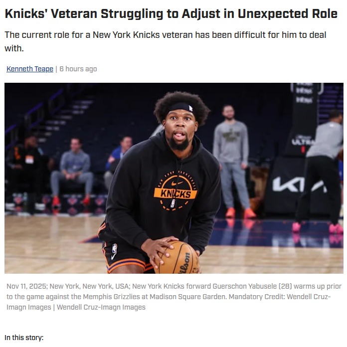 guerrajohn+FollowKnicks’ new big man facing tough transitionGuerschon Yabusele, who made waves with the 76ers and the French national team, is having a rough time fitting into the Knicks’ rotation this season. Despite high hopes, he’s averaging less than 10 minutes per game and admits the adjustment is harder than expected. The Knicks are thriving overall, but with trade rumors swirling and the team needing more frontcourt depth, Yabusele’s future in New York feels uncertain. Do you think he deserves more playing time, or should the Knicks look for another piece to boost their bench? #Sports #Basketball #Knicks00Share