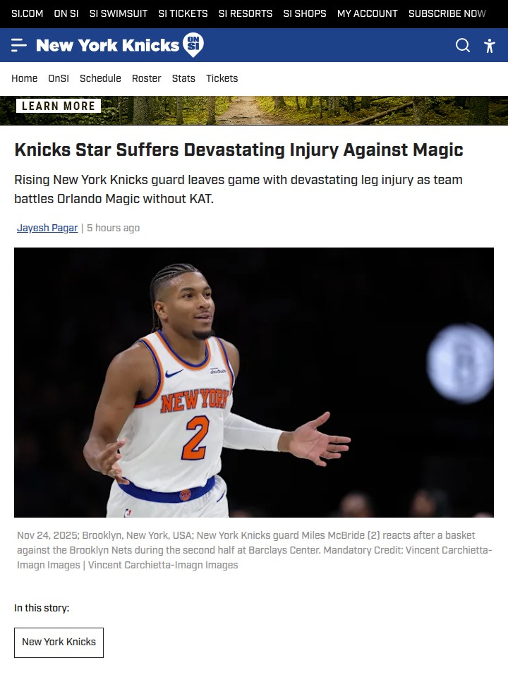 summersivan+FollowKnicks’ guard depth faces big test after McBride injuryThe Knicks just got a real scare—Deuce McBride’s ankle injury isn’t just about one player, it’s a wake-up call for how thin New York’s guard rotation really is. Even though x-rays were negative and he walked off on his own, the team’s recent struggles without him on the floor show how much they rely on his shooting and defense. With the trade deadline coming up, it’s clear the Knicks need more backcourt help, whether McBride misses time or not. What kind of guard should they target to keep their playoff hopes alive? #Sports #Basketball #Knicks00Share