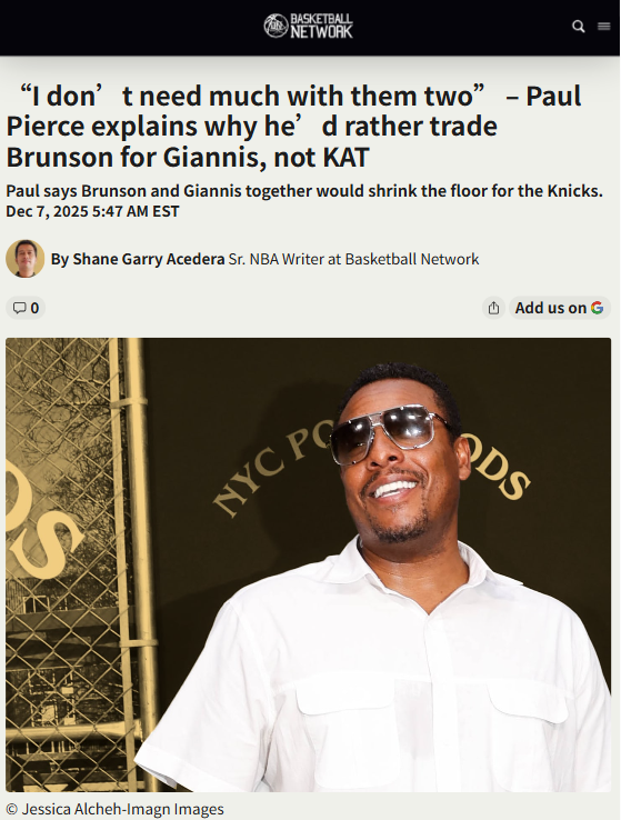 Amy Tanner+FollowWould You Trade Brunson for Giannis?The Greek Freak to NYC? Paul Pierce just stirred the pot, saying the Knicks should trade Jalen Brunson—not KAT—for Giannis. Truth is, pairing Giannis with KAT gives you two nightly 25-point bigs, and Pierce thinks you don’t need a scoring guard with that duo. He even points to OKC’s Chet & Hart combo as proof that two bigs can dominate in today’s NBA. Knicks fans, would you pull the trigger on a Brunson-for-Giannis deal? #Sports #Basketball #Knicks24Share
