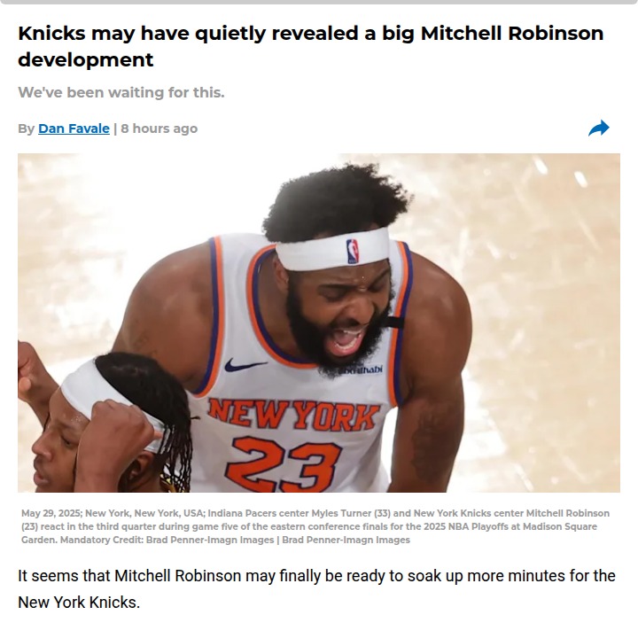 Amy Tanner+FollowMitchell Robinson’s big minutes spark Knicks buzzMitchell Robinson just logged his longest run of the season for the Knicks, and it’s got fans talking. With Karl-Anthony Towns sidelined, Robinson played over 24 minutes against the Magic—way above his usual workload. Even though the circumstances forced the Knicks’ hand, Robinson’s impact on both ends was hard to miss. He brought energy, dominated the glass, and anchored the defense, showing flashes of his old self. If Robinson can keep this up, it could be a game-changer for New York’s playoff hopes. Do you think he should get more minutes moving forward? #Sports #Basketball #Knicks20Share