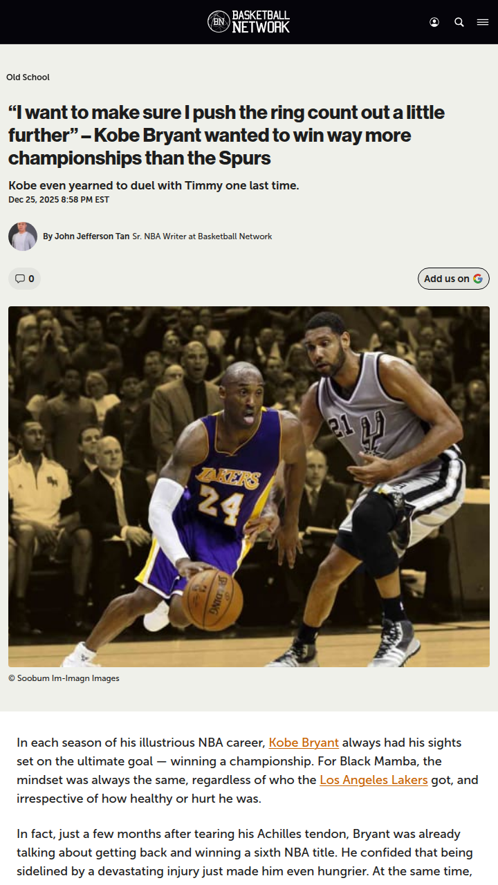 guerrajohn+FollowKobe’s obsession: Outracing the Spurs in ringsKobe Bryant’s drive to win wasn’t just about adding to his own legacy—it was about outpacing the Spurs, too. Even after his Achilles injury, Kobe was laser-focused on coming back stronger, not just for another Lakers parade, but to make sure he had more championships than San Antonio. Watching the Spurs nearly catch up to his ring count fueled his fire. It’s wild to think how much rivalries and personal goals shaped the NBA’s biggest moments. How do you think these kinds of rivalries impact players and teams today? #Sports #Basketball #KobeBryant00Share