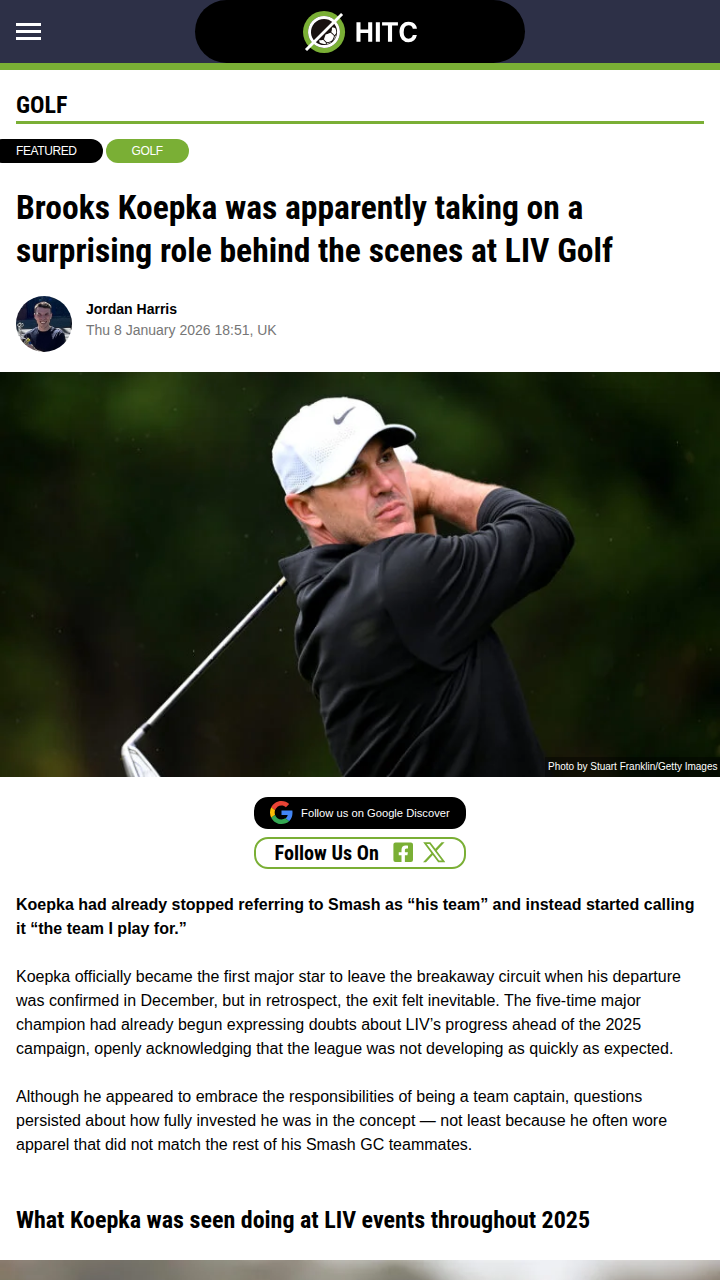 Michael Singh+FollowKoepka’s Smash GC Exit: More Than Meets the EyeAnyone else surprised by how much Brooks “BK” Koepka was actually running the show at Smash GC? Turns out, he wasn’t just captain—he was basically the GM, handling ops while the other teams had full staffs. No wonder he seemed checked out and started calling it “the team I play for.” With all that behind-the-scenes work and his struggles on the course, his LIV exit feels way less shocking now. Thoughts on how this impacts LIV’s team model? #Sports #Golf #LIVGolf00Share