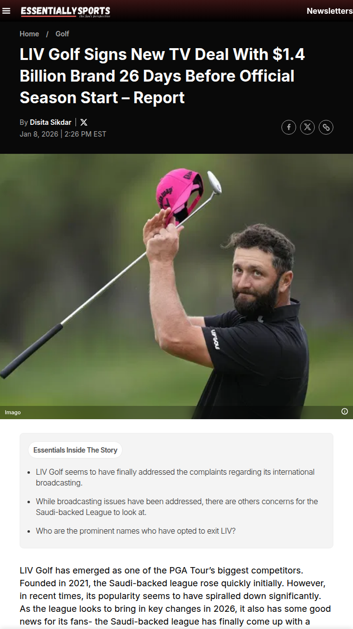 Michael Singh+FollowLIV Golf’s Night Golf Spectacle on TNTGame-changer alert for golf fans! LIV Golf just signed a multi-year deal with TNT Sports, bringing all 14 events—including the world’s biggest pro night golf showdown in Riyadh—to UK and Irish screens starting 2026. With heavyweights like Rahmbo, DeChambeau, and DJ in the mix, plus a new 72-hole format, expect more drama, rivalries, and edge-of-your-seat finishes. Is this the start of a new era for global golf? Let’s hear your takes! #Sports #Golf #LIVGolf00Share