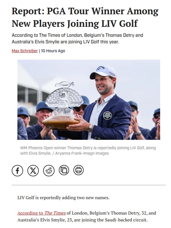 rmendoza+FollowLIV Golf Shakes Up with Detry & Smylie MovesBig news for the golf world—LIV Golf is making waves again by signing Thomas Detry, fresh off his WM Phoenix Open win, and Aussie up-and-comer Elvis Smylie. Detry’s joining his Belgian buddy Pieters on DJ’s 4Aces, bumping Harold Varner III to Smash GC. Meanwhile, Smylie’s likely to slot into Cam Smith’s Ripper GC. With the league moving to a four-day format, these transfers could seriously shift the team rivalries next season. Thoughts on the 4Aces’ new look? #Sports #Golf #LIVGolf00Share
