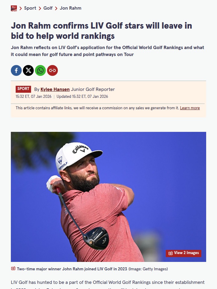 Karen Pierce+FollowRahm: LIV Golf Shakes Up for OWGR PointsBig news from the LIV camp—El Niño himself, Jon Rahm, just confirmed that more players will be relegated this season as LIV Golf tries to finally earn those elusive OWGR points. With the field expanding and nearly 20% of the roster facing the cut, the league is making major moves to legitimize its pathway to the majors. Do you think these changes will finally sway the OWGR board? #Sports #Golf #LIVGolf00Share