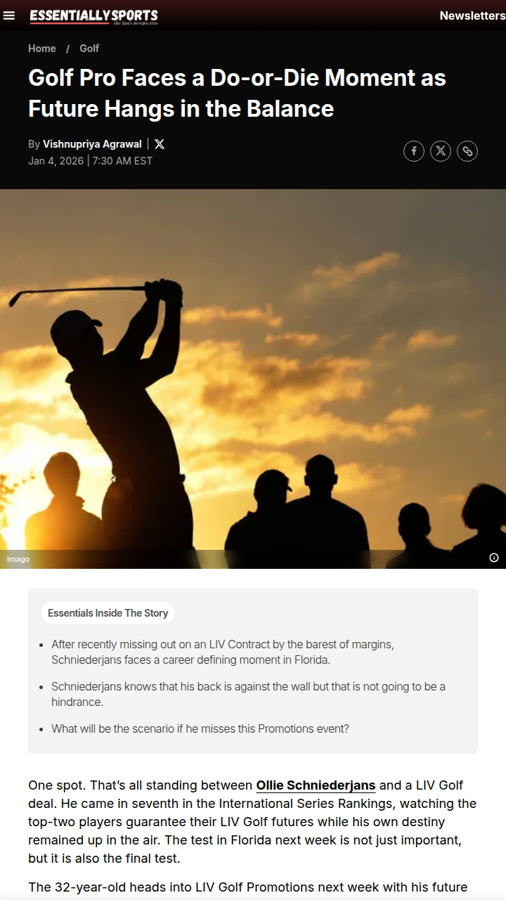 Tammy Davenport+FollowOllie’s Last Shot: LIV Golf Dreams on the LineOllie “The Comeback Kid” Schniederjans is facing the ultimate pressure-cooker: one final chance at LIV Golf Promotions in Florida. After just missing out on an automatic spot—watching rivals Scott Vincent and Yosuke Asaji lock theirs—Ollie now has to outplay 77 hungry pros for one of three golden tickets. His journey’s been a rollercoaster, but he’s heading in with fire and optimism. Can he finally break through and join the LIV elite? #Sports #Golf #LIVGolf00Share