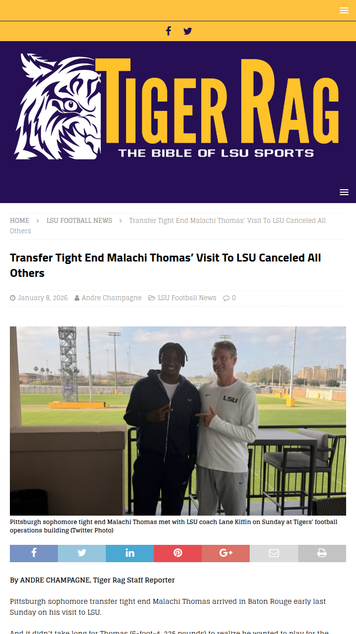 glen25+FollowWhy Malachi Thomas chose LSU over everyone elseMalachi Thomas didn’t need a second look—after just one visit to LSU, he called off trips to Florida, Ole Miss, and Auburn. The standout tight end from Pitt was sold on the Tigers’ vibe, especially after connecting with new coach Lane Kiffin and tight ends coach Joe Cox. Thomas loved breaking down plays, seeing how he’d fit into Kiffin’s high-powered offense, and was wowed by LSU’s NFL-level facilities. He even played pickleball with Kiffin! With this kind of energy and commitment, how do you think Thomas will shake up LSU’s offense next season? #Sports #Football #LSUFootball00Share