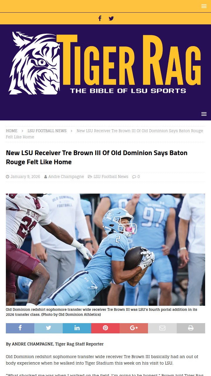 Jay Williams+FollowWhy Tre Brown III chose LSU over Ohio StateTre Brown III, one of the top receivers in the transfer portal, just picked LSU after a visit that totally changed his perspective. Walking onto the field at Tiger Stadium, he said it instantly felt like home—even more than his own hometown in Georgia. Brown’s decision came down to the explosive LSU offense and a real connection with the coaching staff. He even canceled a planned trip to Ohio State after his Baton Rouge experience. With his speed and versatility, Brown could be a game-changer for the Tigers. What do you think—will he make an immediate impact? #Sports #Football #LSUFootball00Share