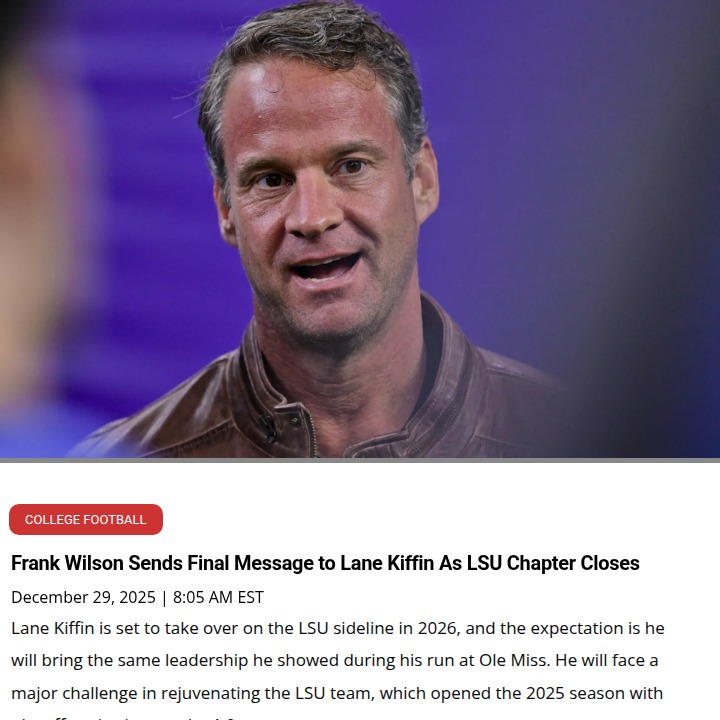 Aaron Taylor+FollowLane Kiffin era set to shake up LSU footballLane Kiffin is officially heading to LSU in 2026, and the buzz is real—he’s known for turning programs around, but can he bring the Tigers back to their glory days? After a season that started with playoff dreams and ended in disappointment, LSU fans are looking for a fresh start. Frank Wilson, who just wrapped up his second stint with the Tigers, praised Kiffin’s leadership and play-calling, saying LSU is in good hands. With Wilson now at Ole Miss and Kiffin assembling his own staff, Baton Rouge is bracing for big changes. What are your hopes (or doubts) for the new era? #Sports #Football #LSUFootball00Share
