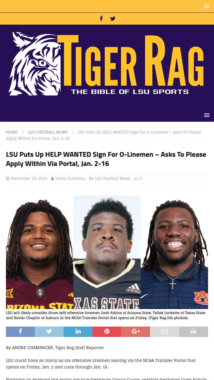 glen25+FollowLSU’s O-line faces big shakeup—what’s next?LSU’s offensive line could look totally different next season, with up to six players eyeing the transfer portal. That’s a huge shift for the Tigers, especially as some of these guys were top recruits. With Coach Lane Kiffin at the helm, expect a major push to bring in new talent—names like Josh Atkins and Tellek Lockette are already on the radar. This kind of roster turnover could change how LSU plays in a big way. How do you feel about so many players testing the portal? Is this the new normal for college football? #Sports #Football #LSUFootball01Share