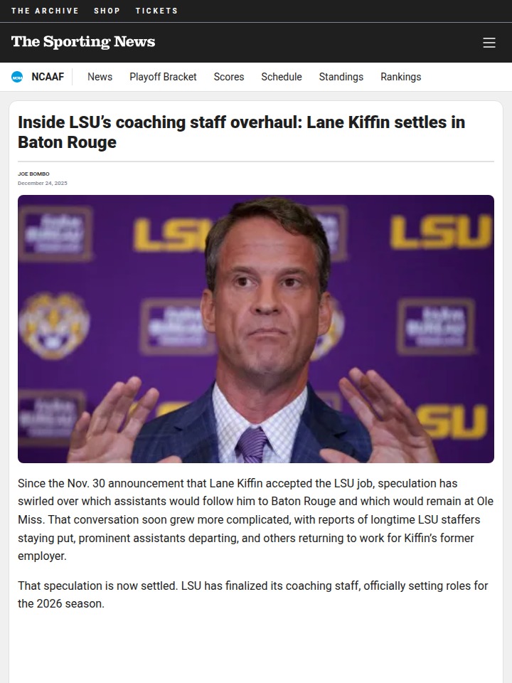 Jay Williams+FollowLSU’s bold new coaching crew shakes up SECLSU’s football program just hit the reset button in a big way. Lane Kiffin’s arrival brought a wave of staff changes, with some familiar faces sticking around and others making surprise moves. The real story? LSU is stacking its coaching titles—think co-coordinators and associate head coaches—to boost pay and attract top talent, especially from Ole Miss. This isn’t just about filling jobs; it’s about building a powerhouse staff for the long haul. Offensively, all eyes are on Kevin Smith and Charlie Weis Jr. Defensively, Blake Baker keeps the reins. What do you think—will this strategy pay off in the SEC? #Sports #Football #LSUFootball00Share