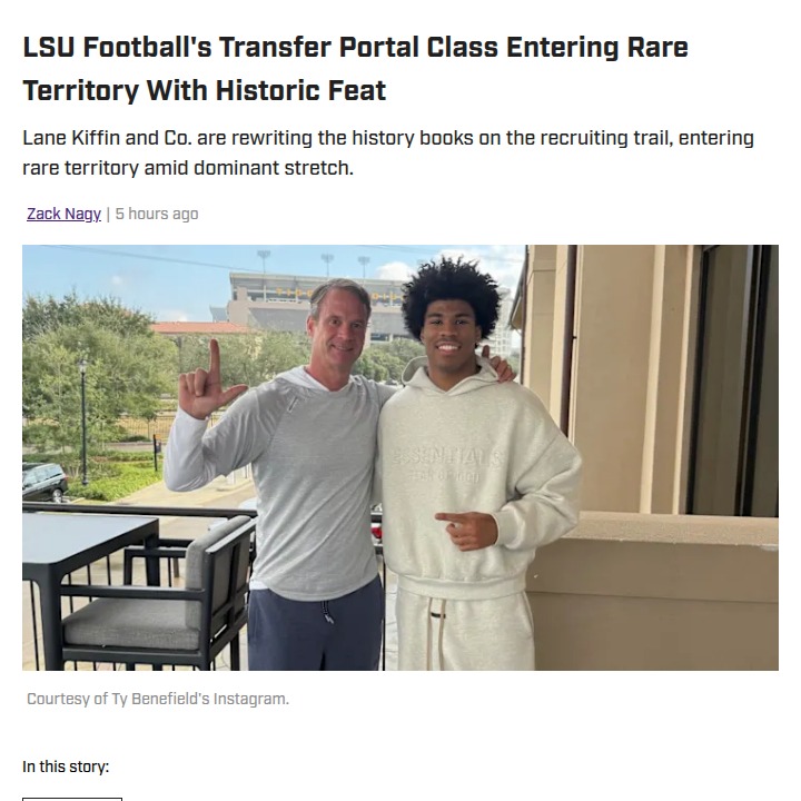 Christopher Hughes+FollowLSU’s Portal Power: Can Kiffin’s Tigers Top SEC?Bayou Bengal fans, is this the Lane Train era we’ve been waiting for? With Kiffin stacking the No. 1 transfer class and nabbing Sam Leavitt at QB, LSU lands at No. 12 in the way-too-early 2026 rankings. The real question: Can this portal-heavy roster finally put LSU back on top and outshine SEC rivals like Bama and Georgia? Let’s hear your takes on Kiffin’s bold rebuild! #Sports #Football #LSUFootball00Share