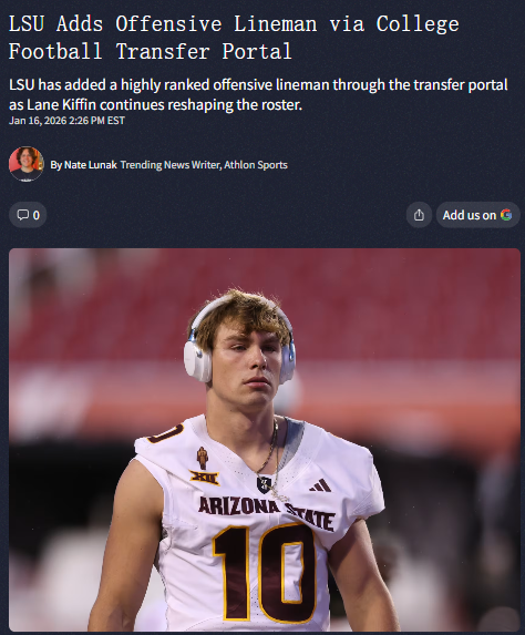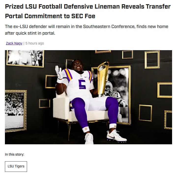 John Camacho+FollowLSU’s transfer portal shakeup: 7 new TigersLSU just pulled off a major roster revamp, landing seven new players from the transfer portal in a single day! With Lane Kiffin at the helm, the Tigers are stacking up depth and experience across the board—especially on the offensive line and defense. Notably, standout linebacker TJ Dottery, last season’s SEC leading tackler, is joining the squad. There’s a real mix of local talent and proven starters, plus some promising young players who could be future stars. What do you think—will this wave of transfers give LSU the edge they need next season? Let’s hear your take! #Sports #Football #LSUFootball00Share
