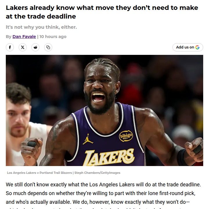 Nicole Obrien+FollowLakers’ Big Man Dilemma: No Trade Needed?Laker Nation, what’s your take on the front office holding off on a center trade this deadline? With King James and AD anchoring the squad, it looks like Rob Pelinka is saving that lone first-round pick for a bigger move down the line. The rollercoaster with Ayton and Hayes aside, the real play might be waiting for a stacked center market this summer. Smart move or missed opportunity? #Sports #Basketball #LakeShow20Share