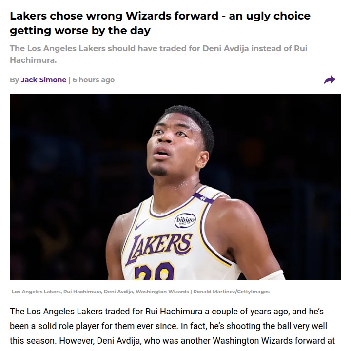 Amy Tanner+FollowDid Lakers Miss Out on Avdija’s Breakout?Laker Nation, let’s talk about the Rui Hachimura trade. Rui’s been a reliable starter and is shooting lights out this season, but watching Deni Avdija break out as a star in Portland stings a bit. Avdija’s putting up All-Star numbers and could’ve been a perfect fit next to Luka and Reaves. Hachimura’s solid, but did the front office miss a chance at something bigger? Curious to hear what you all think about this what-if scenario. #Sports #Basketball #LakeShow00Share