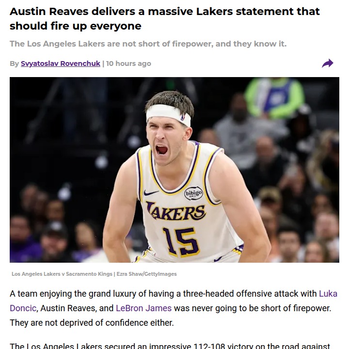 Patrick Gonzales+FollowReaves, King James Shine in Lakers vs 76ersHow about that Lakers vs 76ers showdown? Even with Austin Reaves struggling from the field, King James turned back the clock and carried LA to a gritty road win. Reaves himself called out the squad’s depth—when one head of the three-headed monster has an off night, the others step up. The Lakers’ offense is looking scary, but can they tighten up the D to make a real run? #Sports #Basketball #LakeShow00Share