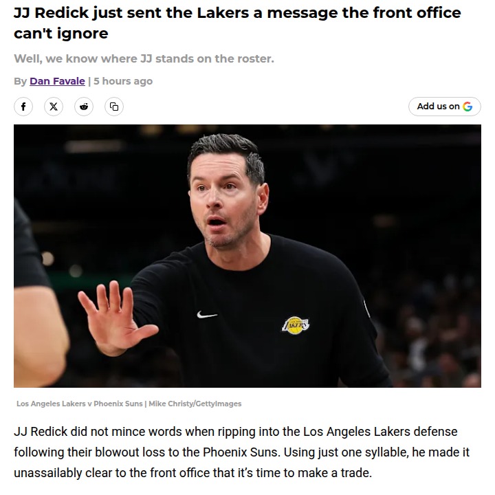 Theresa Boyd+FollowRedick Calls Out Lakers D After Suns BlowoutJJ Redick didn’t hold back after the Lakers’ rough loss to the Suns, dropping a blunt “No” when asked if LA has enough defensive grit. The message to the front office is clear: it’s time for a trade if the LakeShow wants to hang with the West’s elite. King James and crew have the offense, but without a defensive upgrade, they’re not real contenders. Who do you want to see in purple and gold? #Sports #Basketball #Lakers00Share