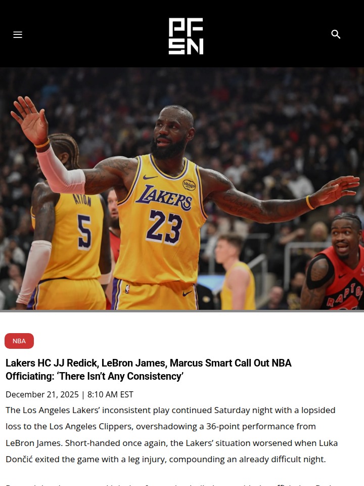 Susan Reeves+FollowLakers vs Clippers: Officiating Sparks OutrageLaker Nation, that loss to the Clippers stings, but what’s really got everyone talking is the officiating. King James dropped 36, but even that couldn’t overcome the refs’ wild inconsistency. JJ Redick and Marcus Smart didn’t hold back postgame, calling out the lack of accountability from the officials. This rivalry always brings drama, but when the zebras are the headline, you know it’s bad. Anyone else feel like the refs are deciding too much lately? #Sports #Basketball #Lakers00Share