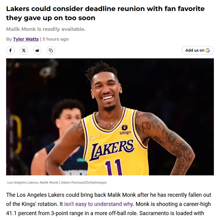 Oscar Gonzalez+FollowLakers eye Malik Monk for a Hollywood comebackMalik Monk, who lit up the Lakers in 2022, could be on his way back to LA after falling out of the Kings’ rotation. Monk’s shooting is better than ever, and with Sacramento looking to move on, the Lakers might snag him and young guard Devin Carter for Jarred Vanderbilt and Gabe Vincent. Monk’s return would give the Lakers a much-needed scoring punch off the bench, especially with LeBron’s minutes needing careful management. Carter’s defensive upside is a bonus. Would you welcome Monk back to LA, or is this move too risky? Let’s hear your thoughts! #Sports #Basketball #Lakers00Share