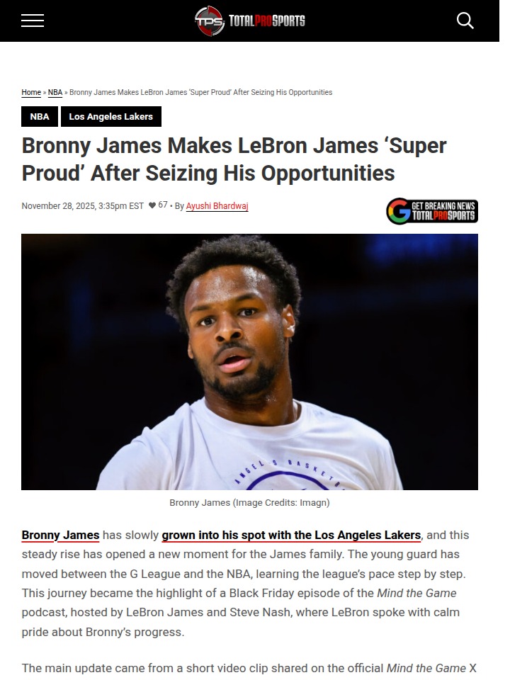 Ryan Lopez+FollowBronny’s Breakout: King James Beams with PrideLakers fans, how about Bronny’s steady climb lately? The Black Friday Mind the Game podcast gave us a real inside look—King James himself opened up about watching his son earn NBA minutes after bouncing between the G League and the big stage. LeBron’s take? He’s guiding Bronny but letting him face the fire on his own. The numbers aren’t flashy yet, but the defensive reads and poise are catching eyes. Is this the start of a new Lakers legacy? #Sports #Basketball #Lakers67Share