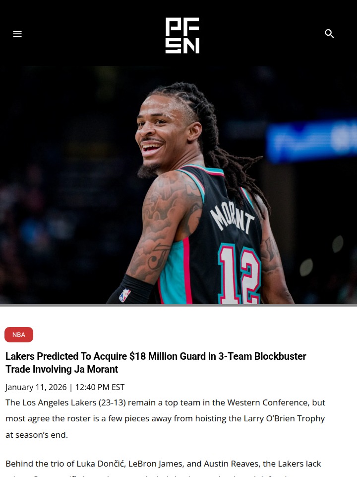 Amy Tanner+FollowJa Morant Trade Rumors Heat Up: Lakers’ Move?Big news brewing in the West! With King James and Luka still needing more help, the Lakers are rumored to be eyeing Ochai Agbaji in a three-team blockbuster that could send Ja Morant to the Raptors. While the Lakers aren’t landing a superstar, Agbaji’s athleticism and defense could be the missing piece for a deep playoff run. What do you think—does this trade make the Lake Show legit contenders, or is it just another minor shuffle? #Sports #Basketball #LakersNation00Share