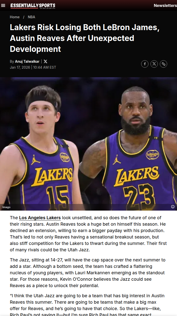 summersivan+FollowWill the Purple & Gold Keep King James and AR15?Lakers fans, how worried are you about losing both King James and AR15 this offseason? With Austin Reaves betting on himself and the Jazz circling, plus LeBron’s contract situation, the Purple & Gold could look very different soon. Do you think the front office can keep this core together, or is a big shakeup coming? Let’s hear your takes! #Sports #Basketball #LakersNation00Share
