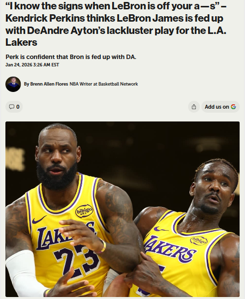 guerrajohn+FollowLakers vs Clippers: Is DA Losing King James?Purple & Gold fans, what’s your take on Deandre Ayton after that Lakers vs Clippers loss? DA got benched for the last 19 minutes and only put up 4 points, while King James looked more frustrated than ever. Kendrick Perkins says Bron’s patience is running out and even predicts Ayton could be out of the league soon if this keeps up. Is this the breaking point for DA in LA? #Sports #Basketball #LakersNation00Share