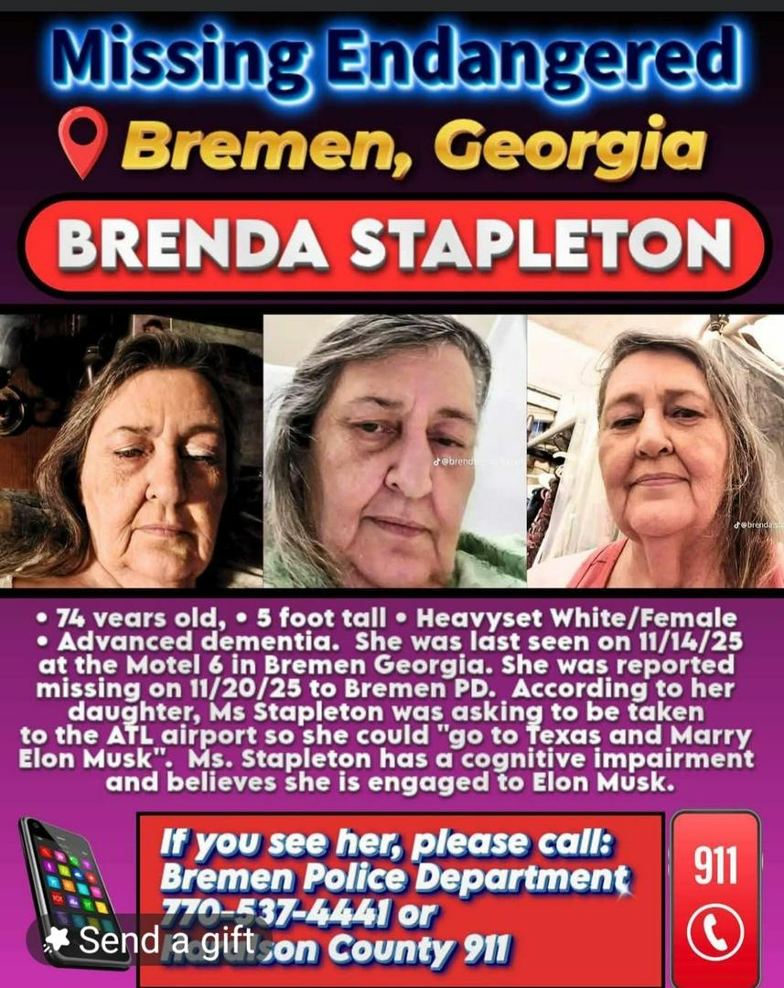 Christina Sorrells+FollowMissing Brenda Stapleton update #TexasNews #MissingPerson #Georgia #Georgia #LasVegas #California #NewsCoverage #News Missing out of Georgia maybe heading to Texas #Florida20Share