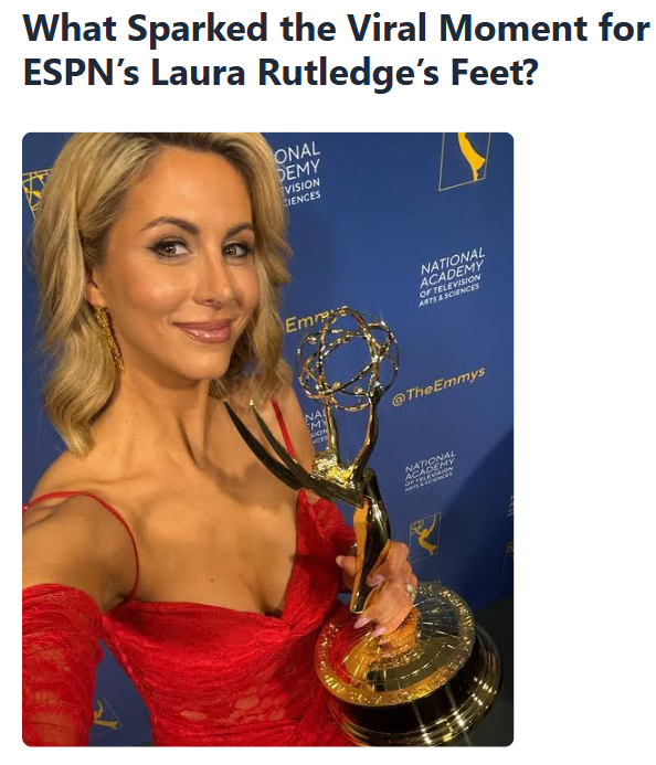 Connie Wilson+FollowLaura Rutledge’s Heels Steal the Show 👠Laura Rutledge is all anyone can talk about after her feet photos from the 2025 Sports Emmy Awards went viral! Fans are calling her the “ESPN FootFetish Queen” and obsessing over her red dress and killer heels. The debate is on: is this just playful fandom or are things getting weird? Either way, Rutledge’s style keeps sparking wild reactions every time she’s on screen! #Entertainment #LauraRutledge #ESPN30Share