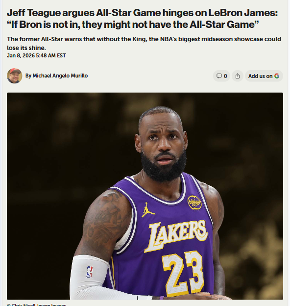 summersivan+FollowIs King James Still an All-Star Lock?Jeff Teague just dropped a hot take: if King James isn’t in the All-Star Game, does the event even matter? LeBron’s streak of 21 straight All-Star nods is on the line this year, with his numbers down and fan votes lagging behind Luka and Reaves. Some say Bron’s legacy alone should get him in, others argue it’s time for new blood. What do you think—should the All-Star Game run without its biggest star? #Sports #Basketball #LeBronJames00Share