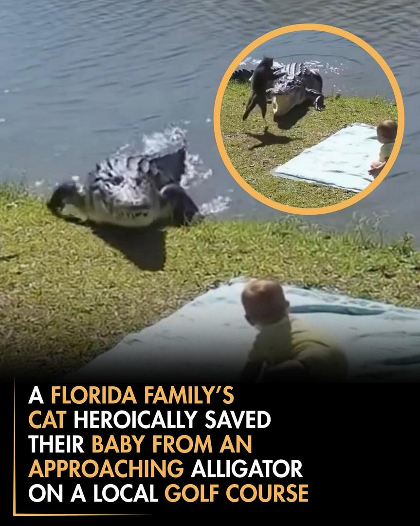 Tiffani chavez+FollowA Lakewood family experienced a terrifying close call when an alligator suddenly emerged from a nearby creek and began moving toward their 10-month-old baby, who was playing near a golf course. The alarming scene unfolded so quickly that the parents barely had time to react, turning an ordinary day into a moment of sheer panic. Before anyone could intervene, the family’s cat, Whiskers, rushed into action. The cat sprinted across the grass and swiped at the approaching alligator, startling the reptile and forcing it to retreat back into the water. The dramatic rescue was captured on a golf course camera, preserving the incredible moment on video. Since the incident, neighbors have affectionately dubbed Whiskers the “Guardian of the Greens.” The cat’s fearless response has drawn widespread praise online, serving as a powerful reminder of the surprising instincts pets can display when protecting the people they love.#AlligatorSpotting #Alligators #Cats #HeroCat #AnimalInstincts #ViralPost #ViralContent #FamilySafety #LocalNews234176Share