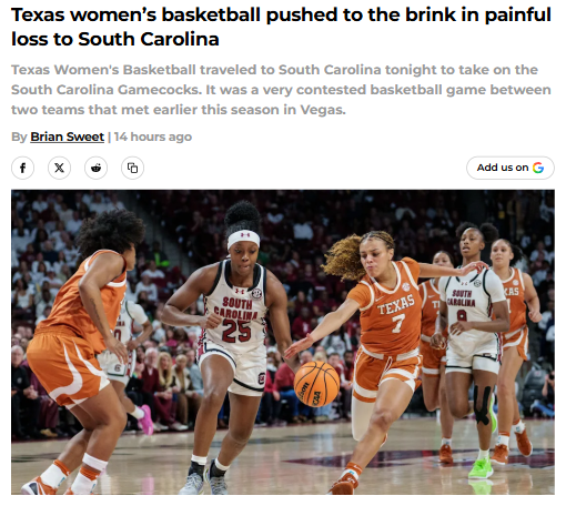 CrimsonChameleon+FollowTexas vs South Carolina: Heartbreaker in ColumbiaLosing two straight is rare for the Texas women’s basketball team, but last night’s 68-65 loss to South Carolina was a gut punch. The Longhorns came out strong on defense and had seven players contribute points, but turnovers in the final minutes proved costly. Rori Harmon bounced back after a tough game against LSU, showing real grit. South Carolina’s Coach Dawn Staley had her squad ready for revenge, and they capitalized on every opportunity. With the Aggies coming to Austin next, the stakes couldn’t be higher. How do you think the Longhorns will respond to this adversity? #Sports #TexasBasketball #Longhorns00Share