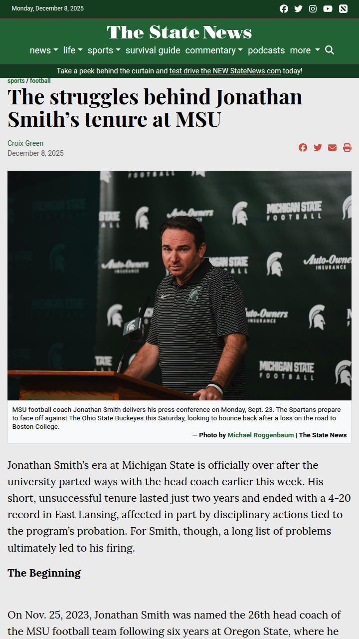 glen25+FollowWhy MSU football just hit reset againMichigan State football is back at square one after Jonathan Smith’s short, rocky run as head coach ended with a 4-20 record and little to show for two tough years. Fans in East Lansing watched as hopes for a quick turnaround faded—recruiting stalled, transfers didn’t pan out, and the team’s energy just wasn’t there. The lack of a clear identity or spark on the field left many wondering what it really takes to rebuild a program from the ground up. What do you think MSU needs most to finally turn things around? #Sports #Football #MSUFootball00Share