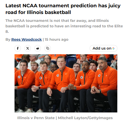 GalacticGiraffe+FollowIllinois’ March Madness path could get wildIllinois basketball fans, this year’s NCAA tournament bracket could serve up some real drama. The Illini are projected as a No. 4 seed, with a first-round game in Philly against UNC Wilmington—solid record, but untested. What’s really got people buzzing? A possible second-round showdown with North Carolina, a rematch of that heartbreaking 2005 title game. If Illinois gets past that, Michigan might be waiting in the Sweet 16, adding even more Big Ten spice. With this team’s confidence, it feels like anything’s possible. Who do you want to see Illinois face on this run? #Sports #IllinoisBasketball #MarchMadness00Share