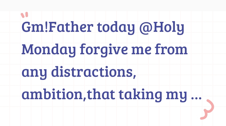Gm!Father today @Holy Monday forgive me from any distractions, ambition,that taking my mind off of you Help me to focus on my temple for you so that I may continue worship you into the Household of Faith in Jesus name I 🙏🏿.help me not to have self ambition in my heart,but of peace that passes all understanding.😇today touch my leaders,brother,sisters family today.help the homeless,touch the broken heart that you will wrap your arms around them give them the comfort they my need @this time,moment in Jesus name,also touch the odom family,lashandra young,the edwards bring them back to your temple,touch the evariste family as well mentally, spiritually well being there girls 🔥🔥🔥