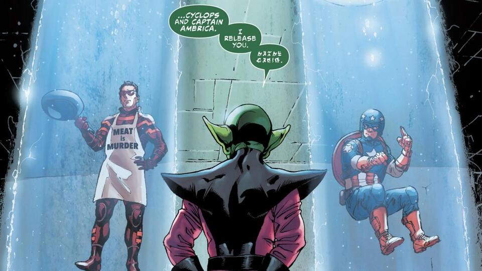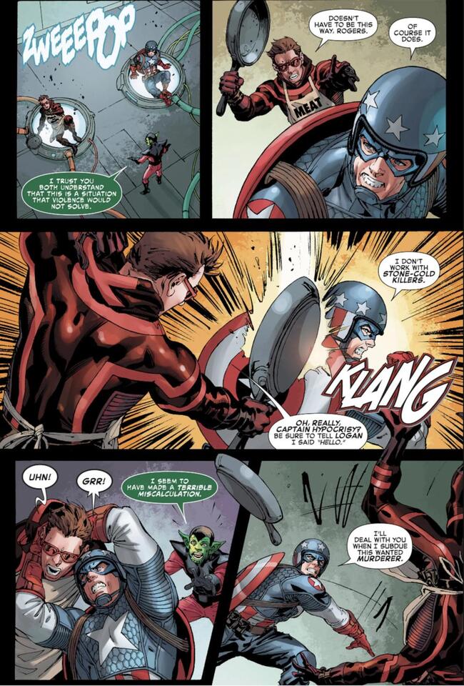 Diana Patrick+FollowCyclops vs Cap: Frying Pan Showdown 🍳Cyclops literally tried to take down Captain America with a frying pan instead of using his optic blasts! This happened right after Avengers vs. X-Men, when the two hated each other’s guts. Instead of blasting Cap, Cyclops went full kitchen warfare. Is this the pettiest X-Men move ever, or what? Fans are split—some say it’s iconic, others call it a total fail. Would you go for the frying pan or something else if you had to fight a superhero? #Entertainment #Comics #Marvel00Share