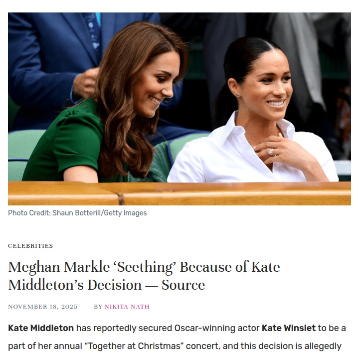 Leah Gonzales+FollowMeghan ‘Fuming’ Over Kate’s A-List Christmas 🎄Word is Meghan Markle is absolutely seething after Kate Middleton managed to get Kate Winslet for her next “Together at Christmas” concert. Insiders say Meghan’s upset because she struggled to land big stars for her own projects, while Kate just swoops in and snags an Oscar winner. The fandom is split: is this a royal power move by Kate, or is Meghan just unlucky with Hollywood? The drama is real! #Entertainment #Celebrity #MeghanMarkle6927Share