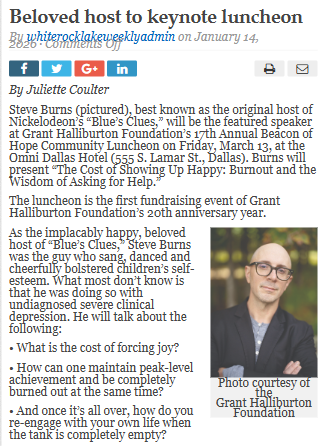 Ryan Mathis+FollowBlue’s Clues star opens up at Dallas luncheonSteve Burns, the original face of Blue’s Clues, is stepping into the spotlight in Dallas—not to solve mysteries with a cartoon dog, but to get real about mental health. For years, he was the cheerful TV host who lifted kids’ spirits, all while quietly battling severe depression. At the Grant Halliburton Foundation’s Beacon of Hope Luncheon, Steve’s sharing what it really costs to always ‘show up happy’ and why asking for help matters. This event isn’t just about nostalgia—it’s about breaking the silence on burnout and supporting youth mental health in North Texas. What would you ask Steve about his journey? #Entertainment #DallasEvents #MentalHealth00Share